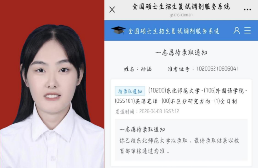 2026年的春天,我收到了东北师范大学英语笔译专业的研究生拟录取通知,拿到了继续深耕翻译领域的入场券。感谢外国语学院所有老师的悉心栽培,感谢我的家人和朋友,一直无条件地支持我、信任我。毕业在即,千言万语,心有不舍,今天想和大家分享我在光华的成长与备考历程。