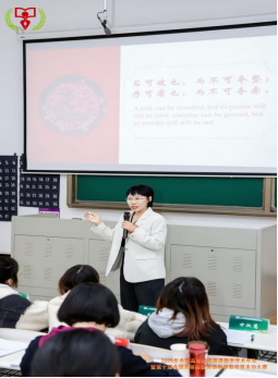 现场授课对象为南京理工大学外国语学院学生。该课程以《理解当代中国》“中国新长征”为核心主题,教学中徐代老师通过石可破也,而不可夺坚;丹可磨也,而不可夺赤的中英文解读,先阐明“事物核心属性不因外在挑战而改变”的内涵,进而自然引出新长征需坚守“为民族复兴奋斗”的坚定信念,清晰搭建起古语精神与新长征信念的关联,为“外语教学+思政”融合提供了实践样本。