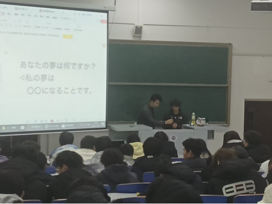 2025年11月8日,在第一教学楼阶梯10与阶梯11教室,我校日语专业两位外籍教师——藤森悠司老师与诸角天美老师,成功开展两场以“促进国际文化交流”为主题的专题讲座。此次讲座主要面向大一、大二的非日语专业的日语学习者,现场气氛热烈,掌声不断,为同学们带来了一场兼具知识性与趣味性的文化盛宴。