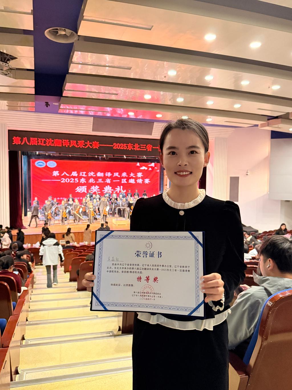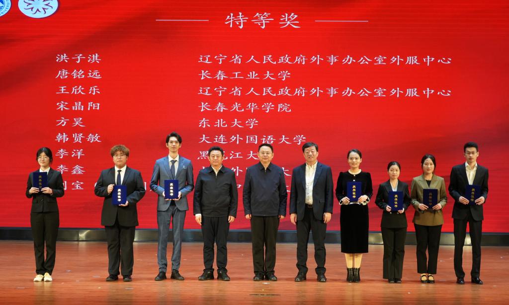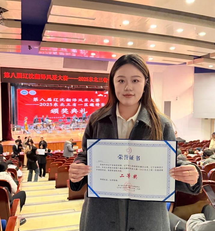 为服务新时代东北全面振兴,助力打造东北亚开放合作枢纽地,进一步挖掘优秀翻译人才,发现储备一批翻译力量。11月17日,由中共辽宁省委宣传部、辽宁省教育厅以及辽宁省人民政府外事办公室联合主办,东北大学承办的第八届辽沈翻译风采大赛——2025东北三省一区邀请赛(原“辽沈最美翻译官”大赛)顺利落下帷幕。在这场赛事中,我校教师积极参与,并取得佳绩。