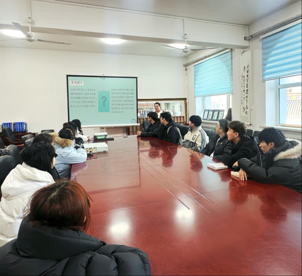 2025年12月10日下午,外国语学院在文华楼501教室举办了《中国学生习得韩语副词格助词的偏误研究》为主题的学术讲座。此次讲座由胥思名博士主讲,系统梳理了韩语副词格助词的分类、应用特点、偏误现象及研究方法。