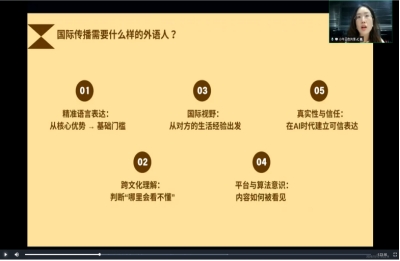 “人工智能语言时代,我们为什么要学习外语?怎么做翻译?”这一主题直播,让我对自己的专业有了更深刻的认同。专家结合国际交流与全球治理的真实案例,生动阐释了新时代外语学习与翻译工作的重要价值,也让我意识到,中国对高端翻译人才的需求愈发迫切,而我们作为外语学子,不能只做“语言工具”,更要成为“文化桥梁”。直播中,专家强调的人机互动能力与跨学科翻译能力,让我明白,在AI普及的今天,单纯的语言翻译已远远不够,只有兼顾文化解读、跨学科知识与AI工具运用,才能提升国际传播效果,这也为我后续的专业学习指明了方向。《外语人的国际传播突围:AI时代的社媒运营与跨文化叙事》主题分享,更是打破了我对翻译工作的传统认知。我此前一直认为,翻译只是“语言转换”,却忽略了跨文化传播的底层逻辑。通过专家的拆解,我学会了如何结合社媒特点,将中国文化元素与国际传播语境相结合,理解了“好的翻译不仅要准确,更要让不同文化背景的人读懂、认同”。而翻译项目管理与翻译能力评价主题课程,则从实操角度,为我们讲解了翻译项目的全流程管理与专业评价标准,填补了我对行业实操认知的空白,也让我明白,一名优秀的翻译从业者,不仅要具备扎实的语言功底,还要有严谨的流程意识与专业的职业素养。