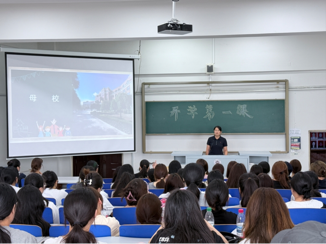 为了全面、细致、规范地做好我院2025级本科新生入学教育工作,外国语学院于8月31日下午,在第一教学楼阶梯教室召开2025级新生见面会暨军训动员大会。会议由学院党总支副书记苏云波老师、新生辅导员李勇老师主持,全体2025级新生参会。